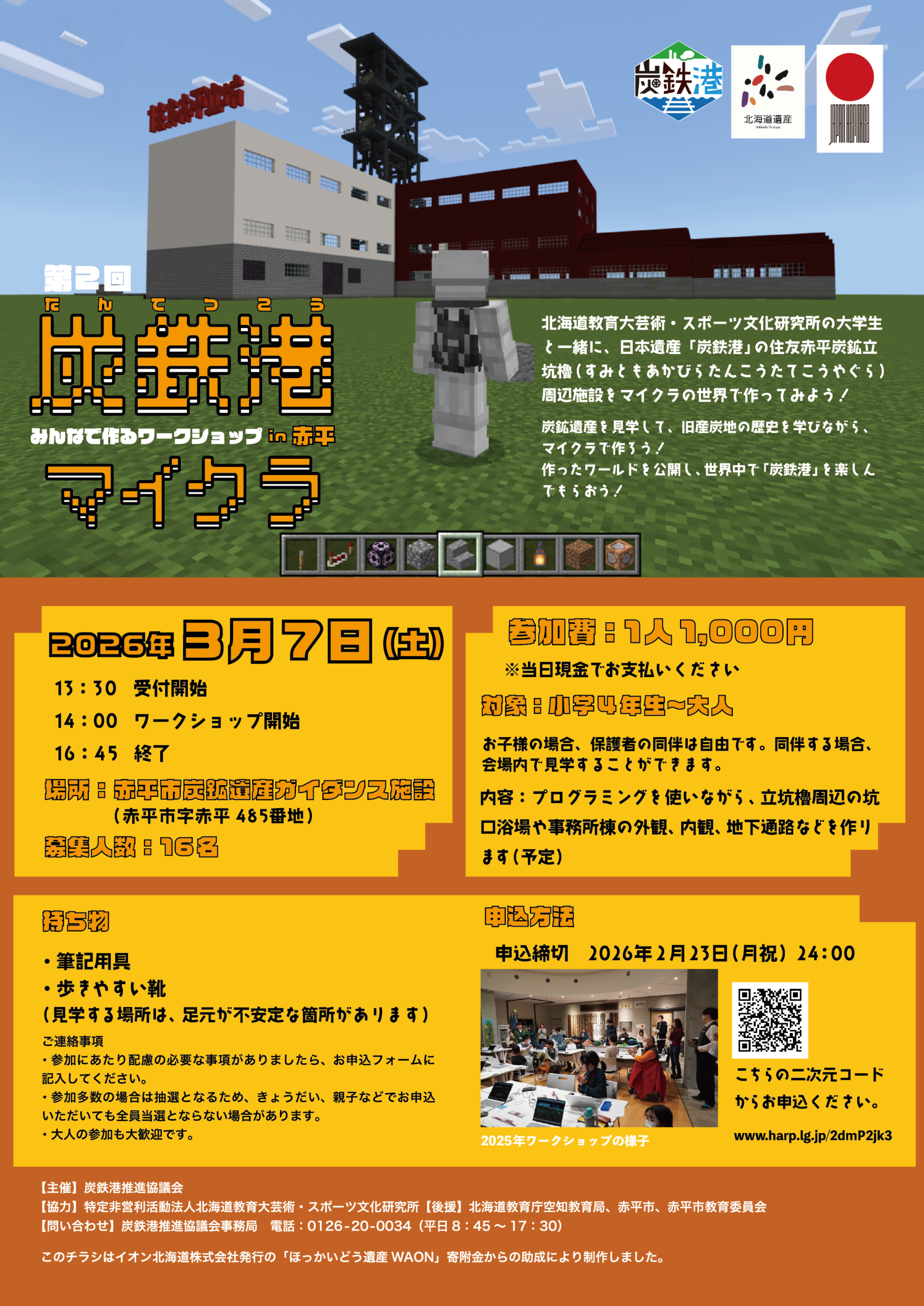 「第2回炭鉄港マイクラ みんなで作るワークショップin赤平」を開催します!