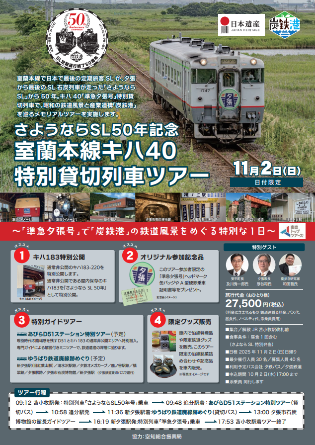 昭和の鉄道風景と産業遺構「炭鉄港」を巡るメモリアルツアーを実施します。